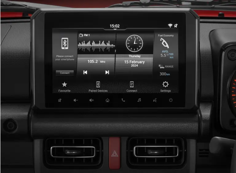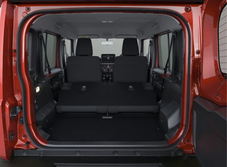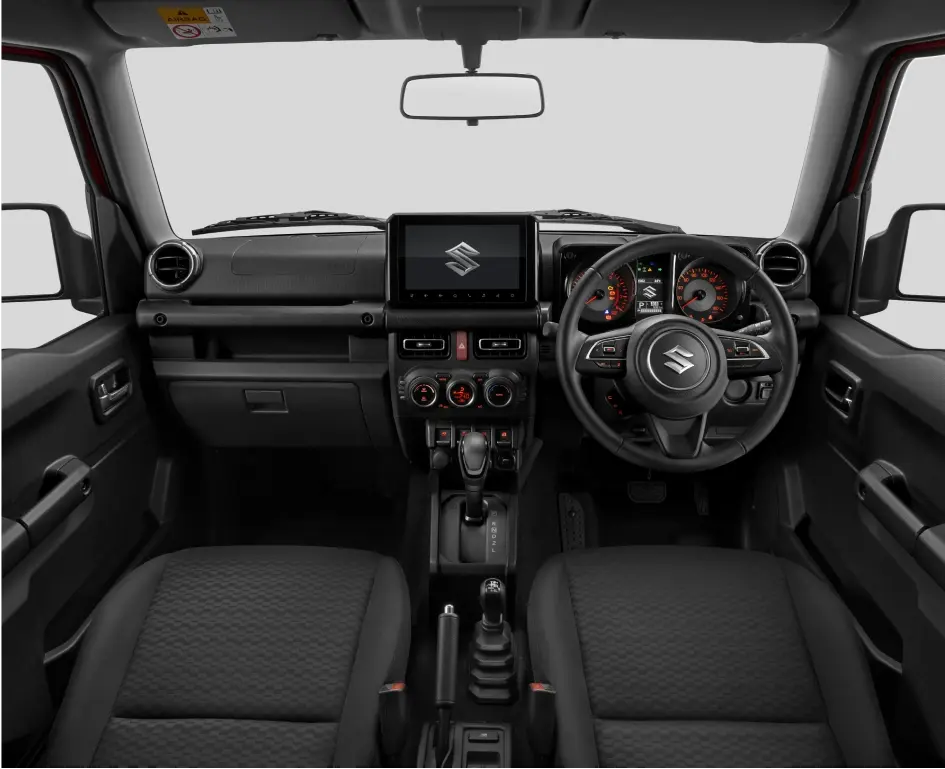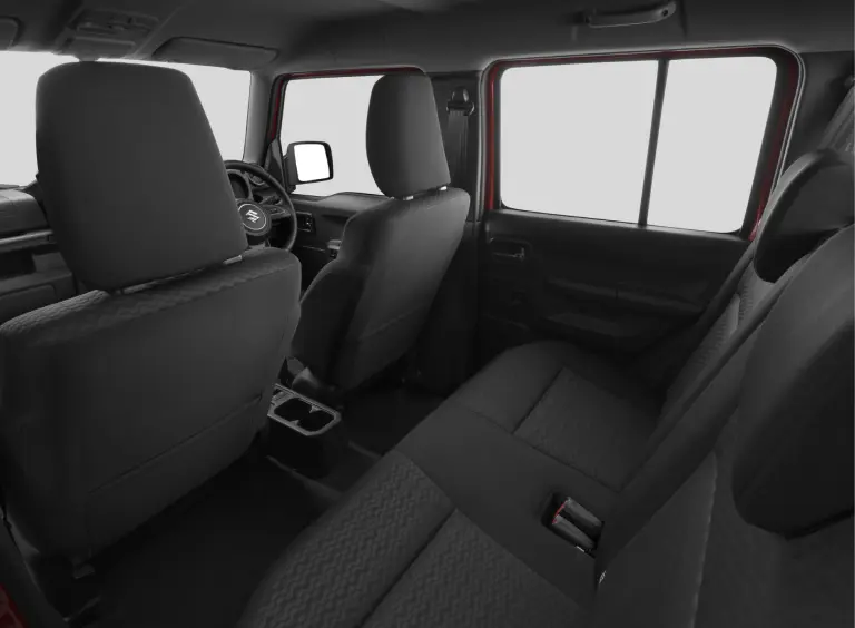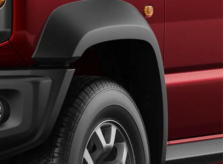 Jimny didesain untuk ketangguhan off-road. Desain kotaknya mengekspresikan kemampuan dan ketahanan. Grille depan simpel berwarna hitam yang ikonik, semakin mempertegas eksterior yang kuat.